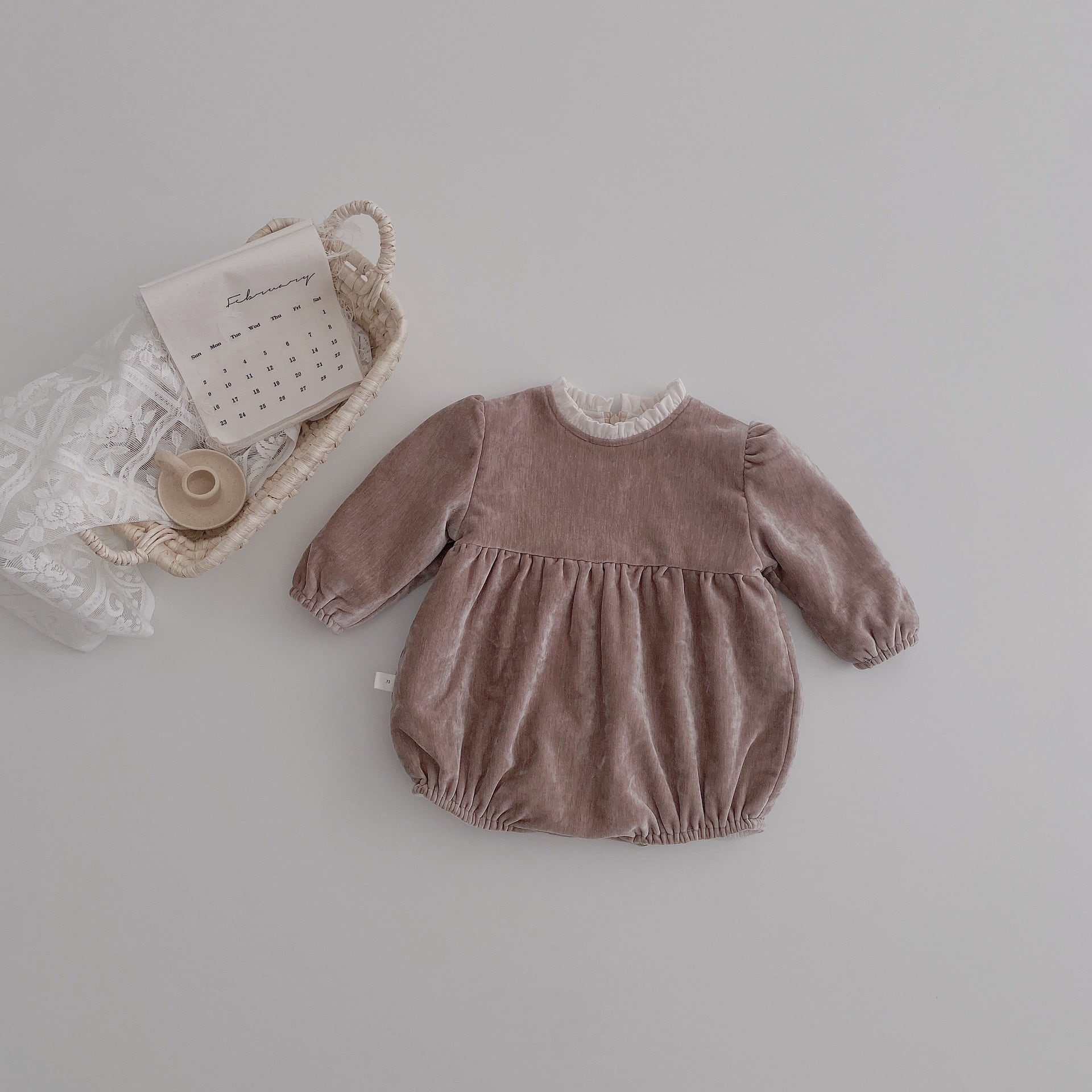 ベルベットのような生地でできたロンパース♡