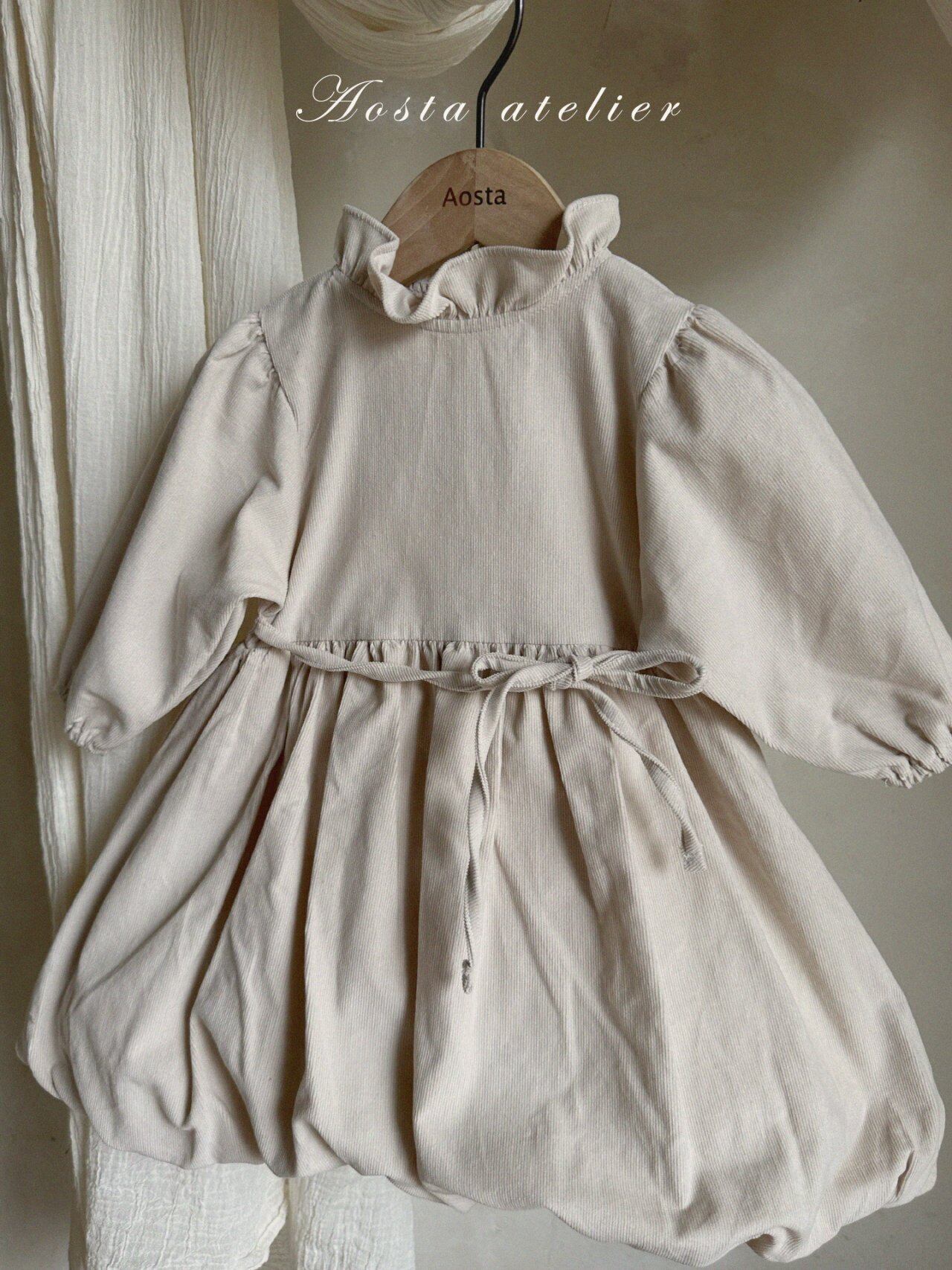 美しいコーデュロイバルーンワンピース。